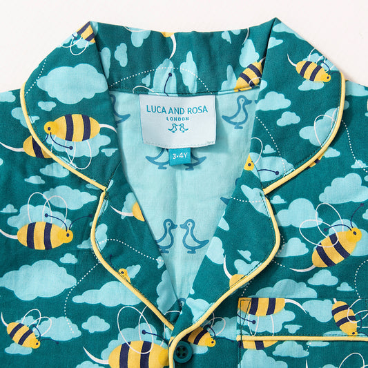 Snuggle up in Luca & Rosa London’s award-winning premium two-piece busy bees pyjama set. Our soft, luxurious children's nightwear is crafted from 100% organic cotton, giving your little one the ultimate comfort and breathability.