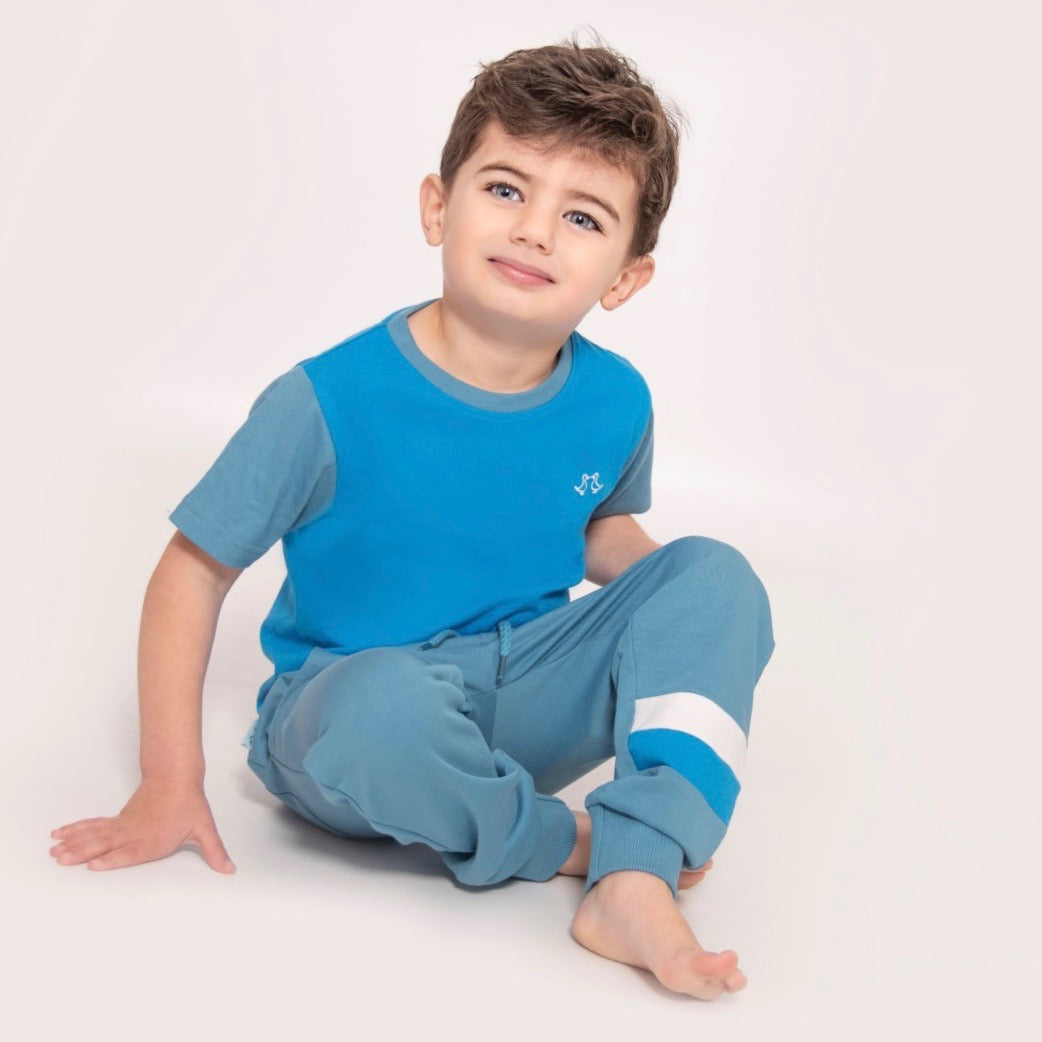 Relax and play in our soft lounge tee in calming blues.