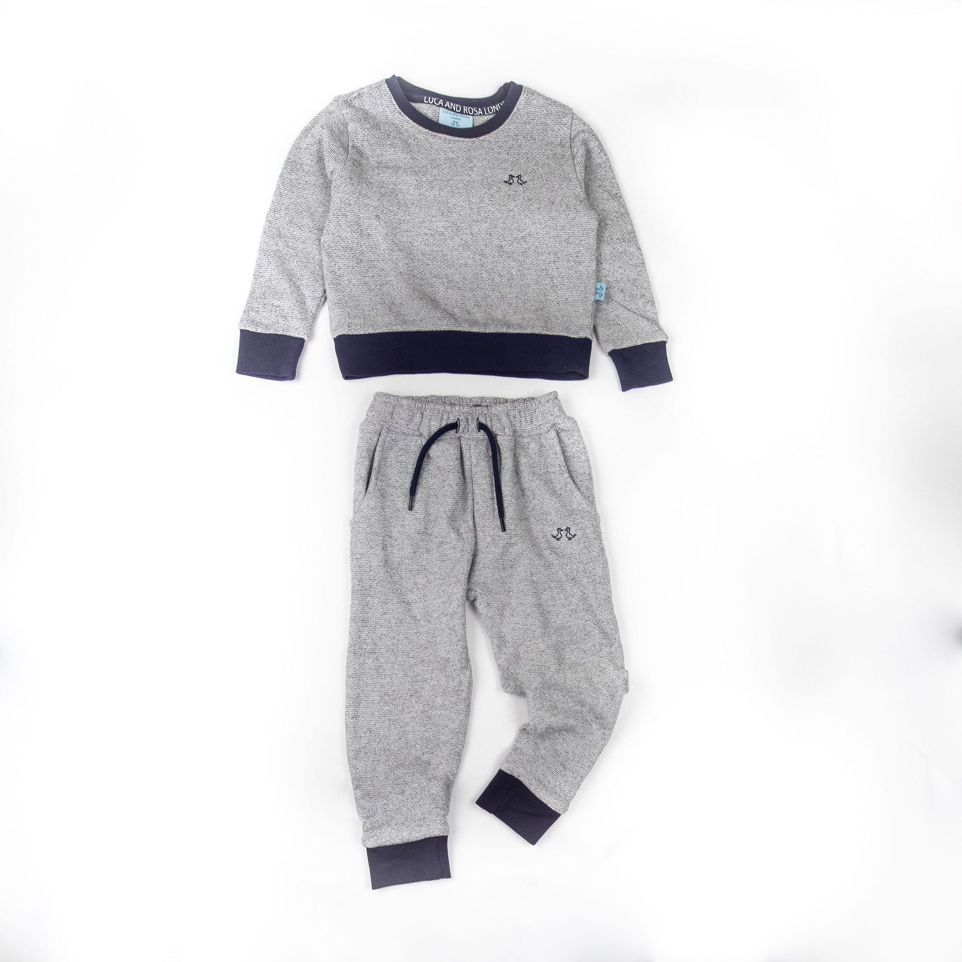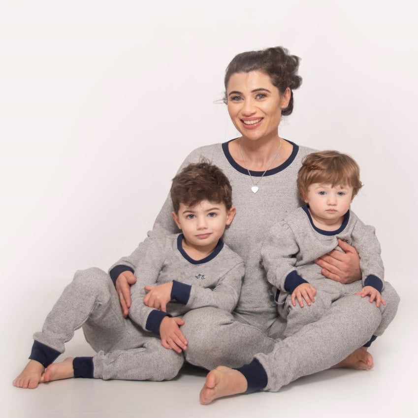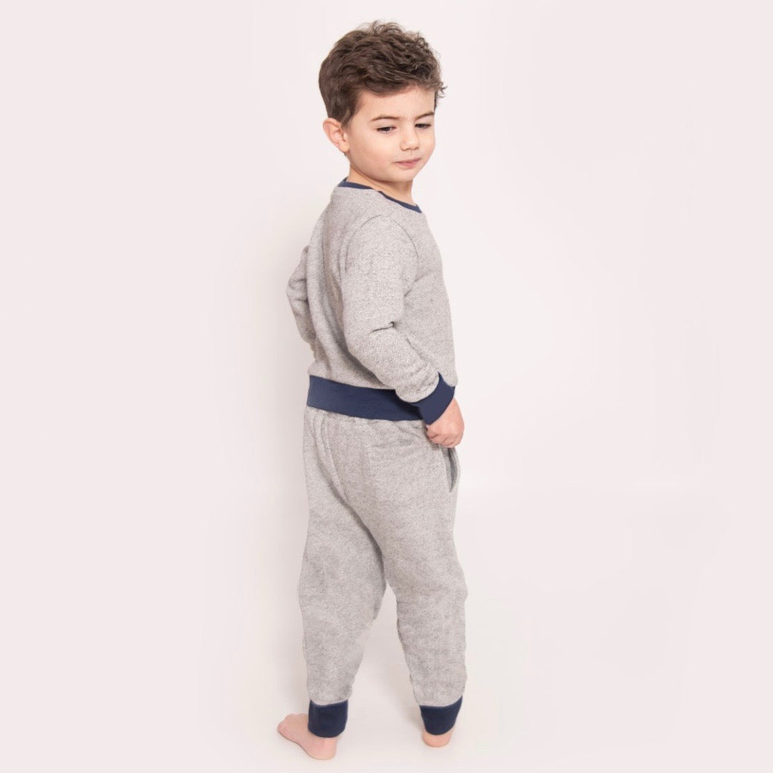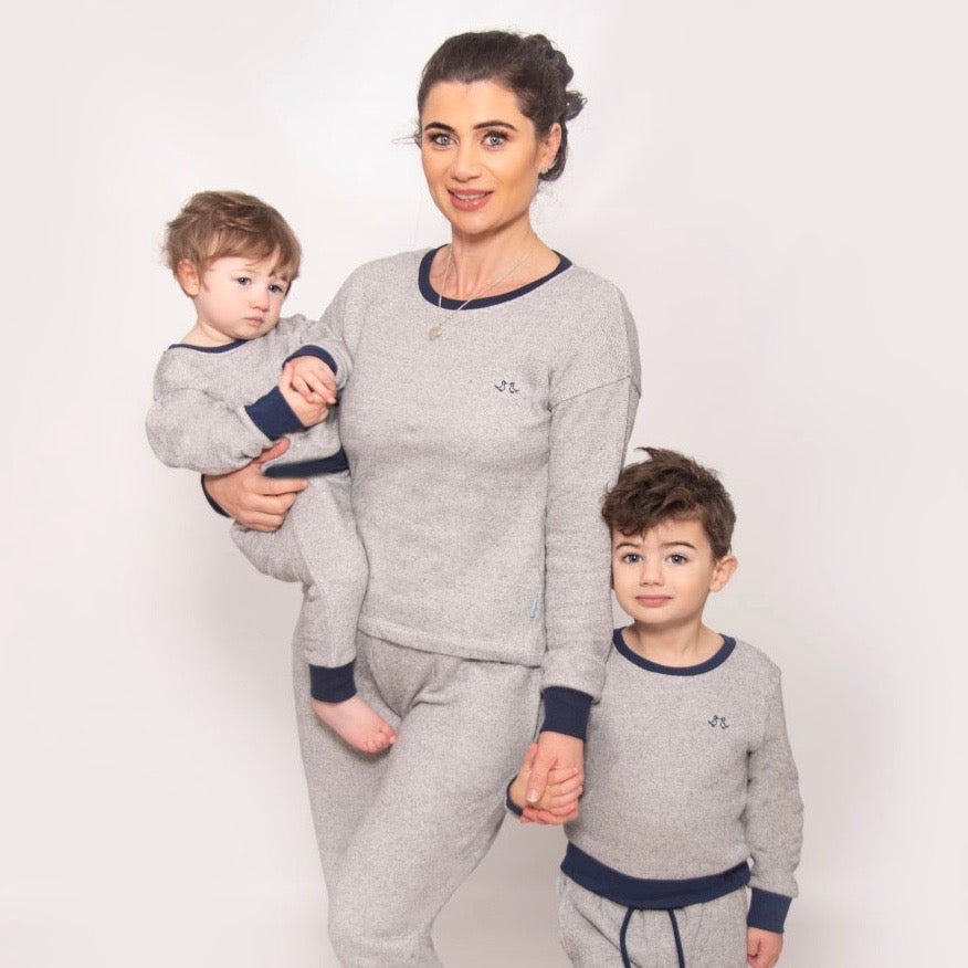 Relax and play in our soft fun printed two piece lounge set in soft Greys.
