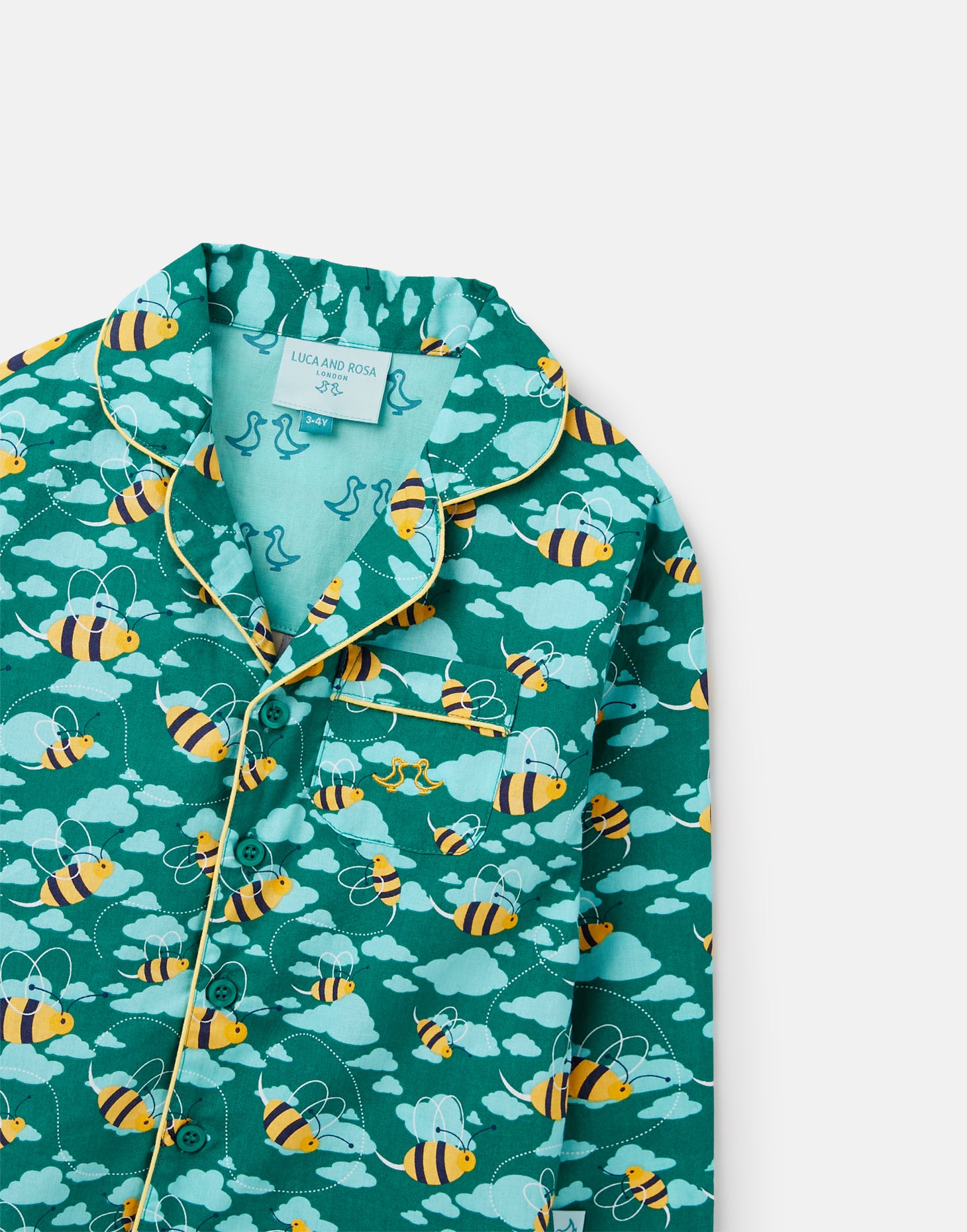 Featuring our unique embroidered duck logo on the front pocket, these super-soft pyjamas include a classic collared top and button-through front. Matching bottoms complete the look with an elasticated waist for ultimate comfort.