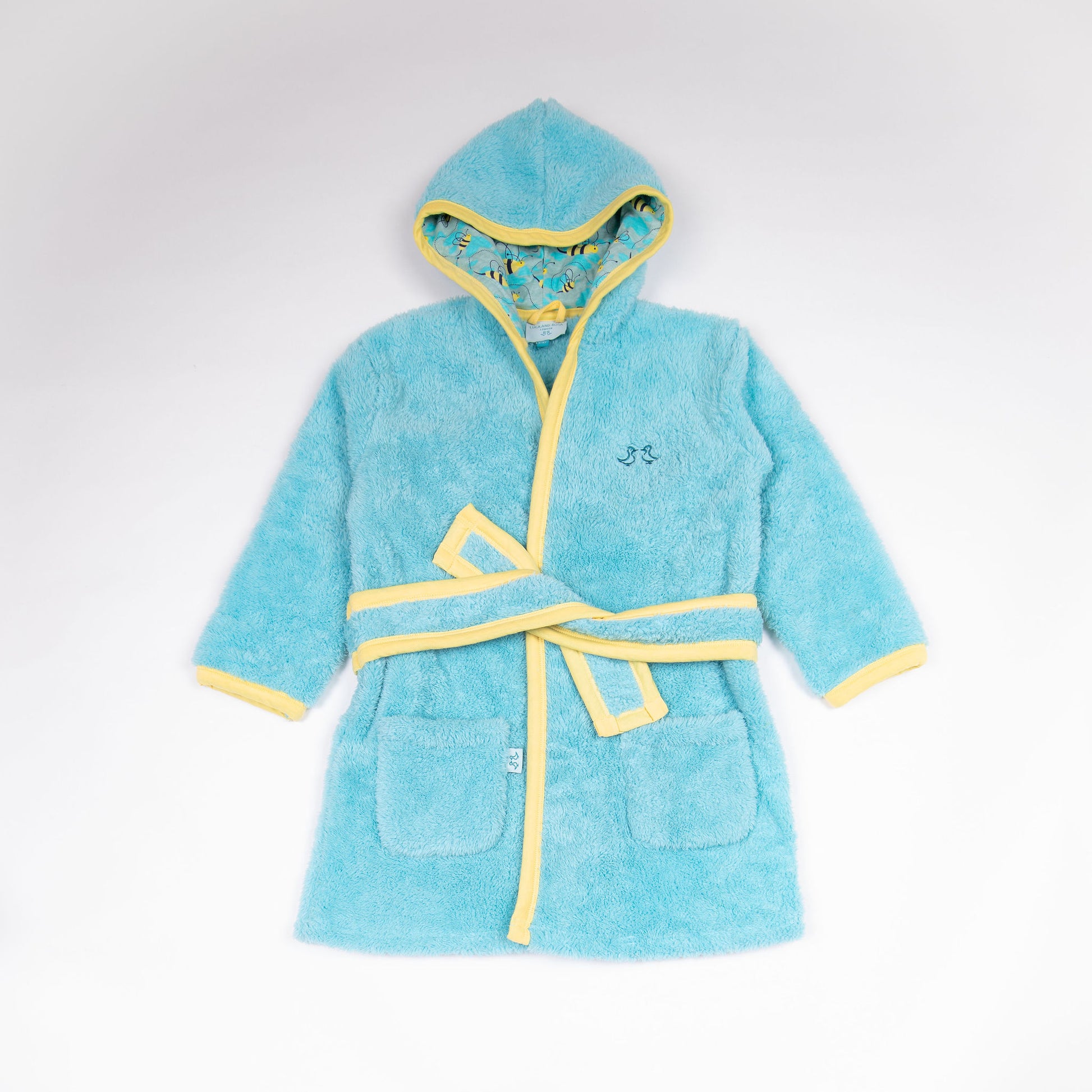Cosy up in our luxurious soft fleece boys dressing gown, perfect for cuddling up before bedtime! Lovingly made from super-soft sherpa fleece, the Busy Bees dressing gown features a jersey hood lining with our signature light aqua print. It also has two front pockets and a secure tie belt.