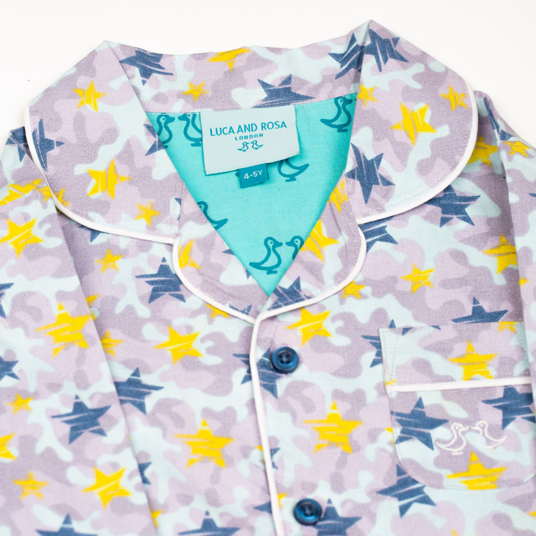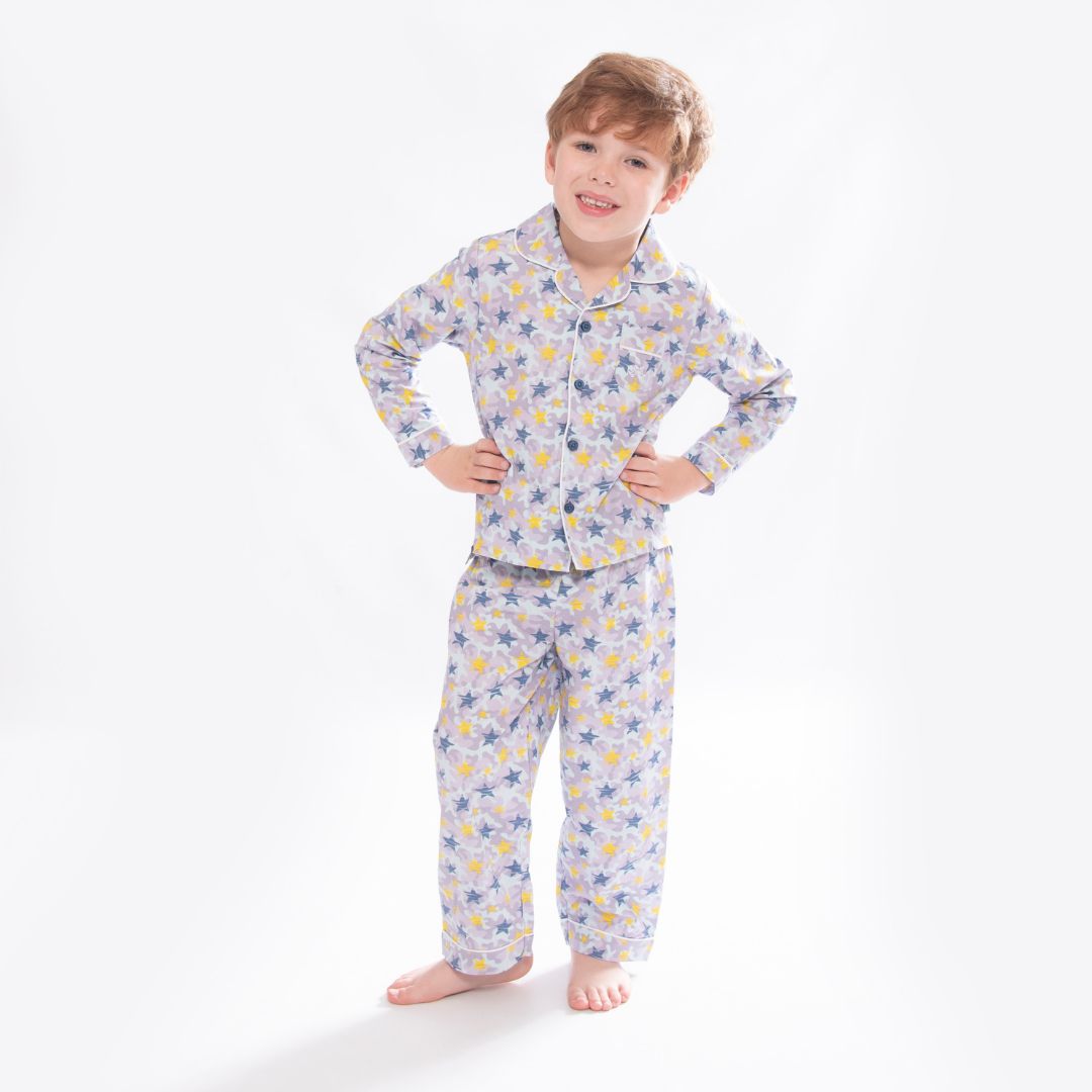 Inspire sweet dreams and a blissful night’s sleep in these sumptuous two-piece boy's pyjamas. Designed in our grey, navy and yellow mixed star print, they have been affectionately crafted from our beautiful cotton blend.