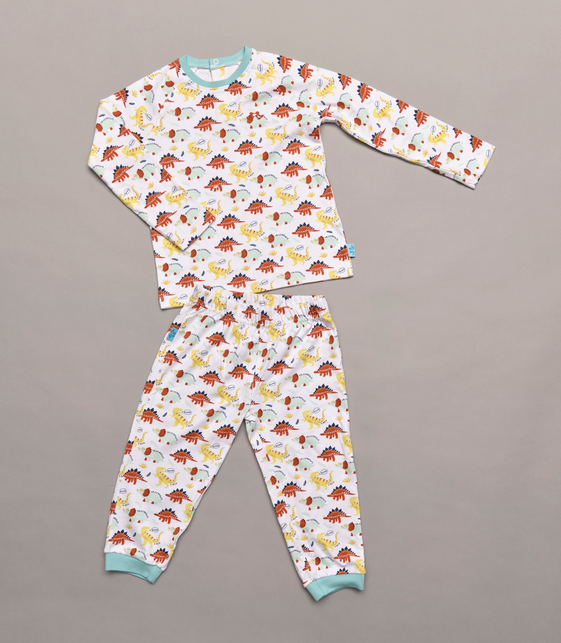 Your little treasure will be so excited for bedtime wearing our dinosaur pyjamas. Designed in super soft, high quality organic cotton, they guarantee ultimate comfort right through until morning.These adorable boy's pyjamas come embroidered with our distinctive logo.